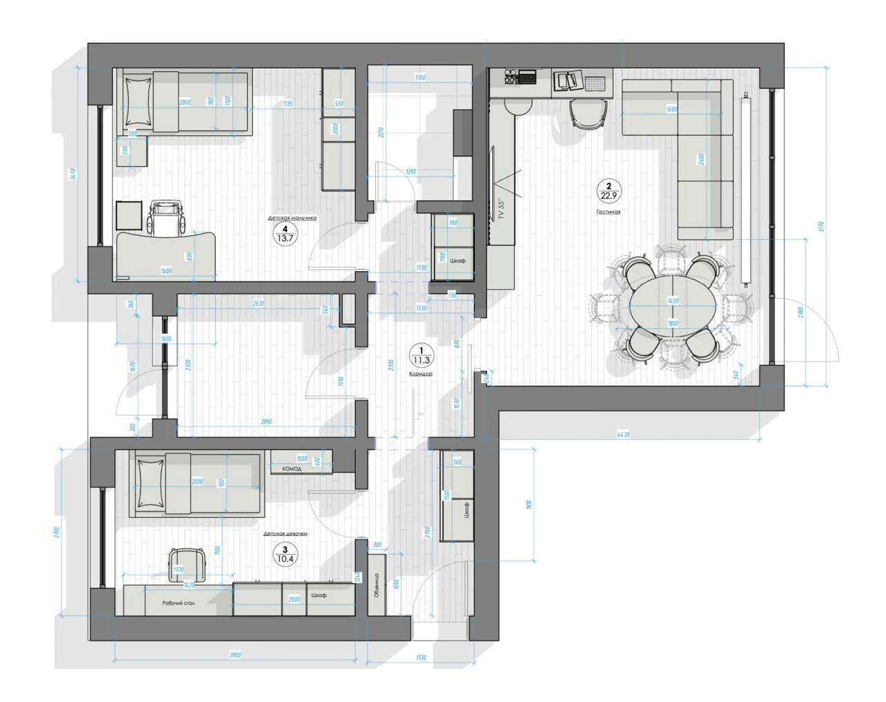 - Окончательный вариант планировки со всеми необходимыми для понимания габаритов размерами;