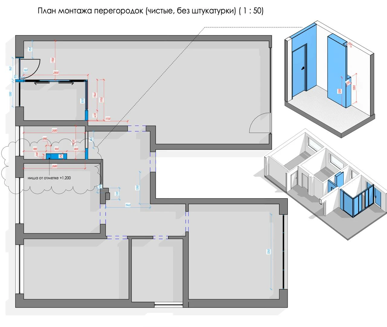 - План монтажа со всеми необходимыми размерами и основными привязками сантехнического оборудования;